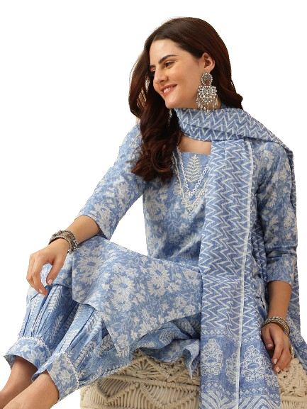 Elevate your ethnic style with this EthniFlair Floral Printed Embroidered Kurta with Patiala & Dupatta. Designed with intricate embroidery on the yoke, this set beautifully combines traditional detailing with a contemporary floral print. The lace accent on the Patiala adds an elegant finish, while the matching dupatta completes the look — perfect for festive occasions, family gatherings, or casual celebrations.