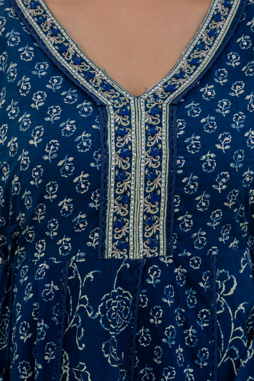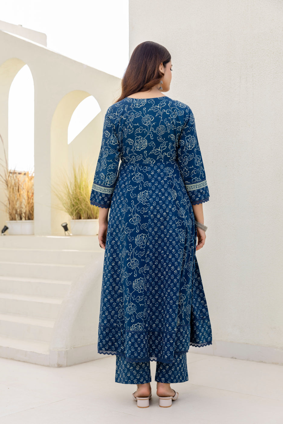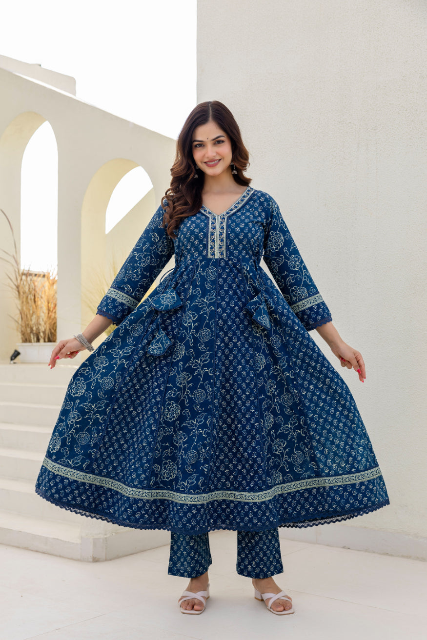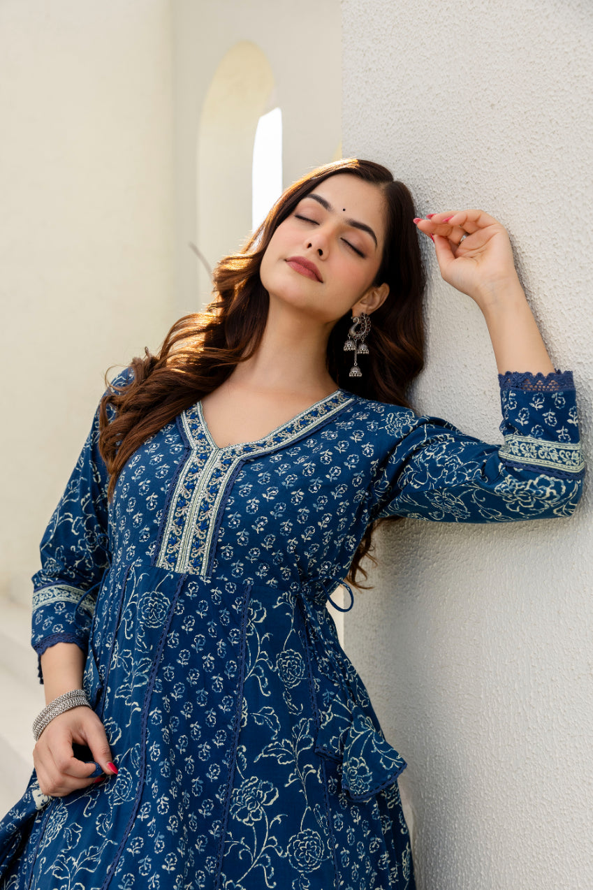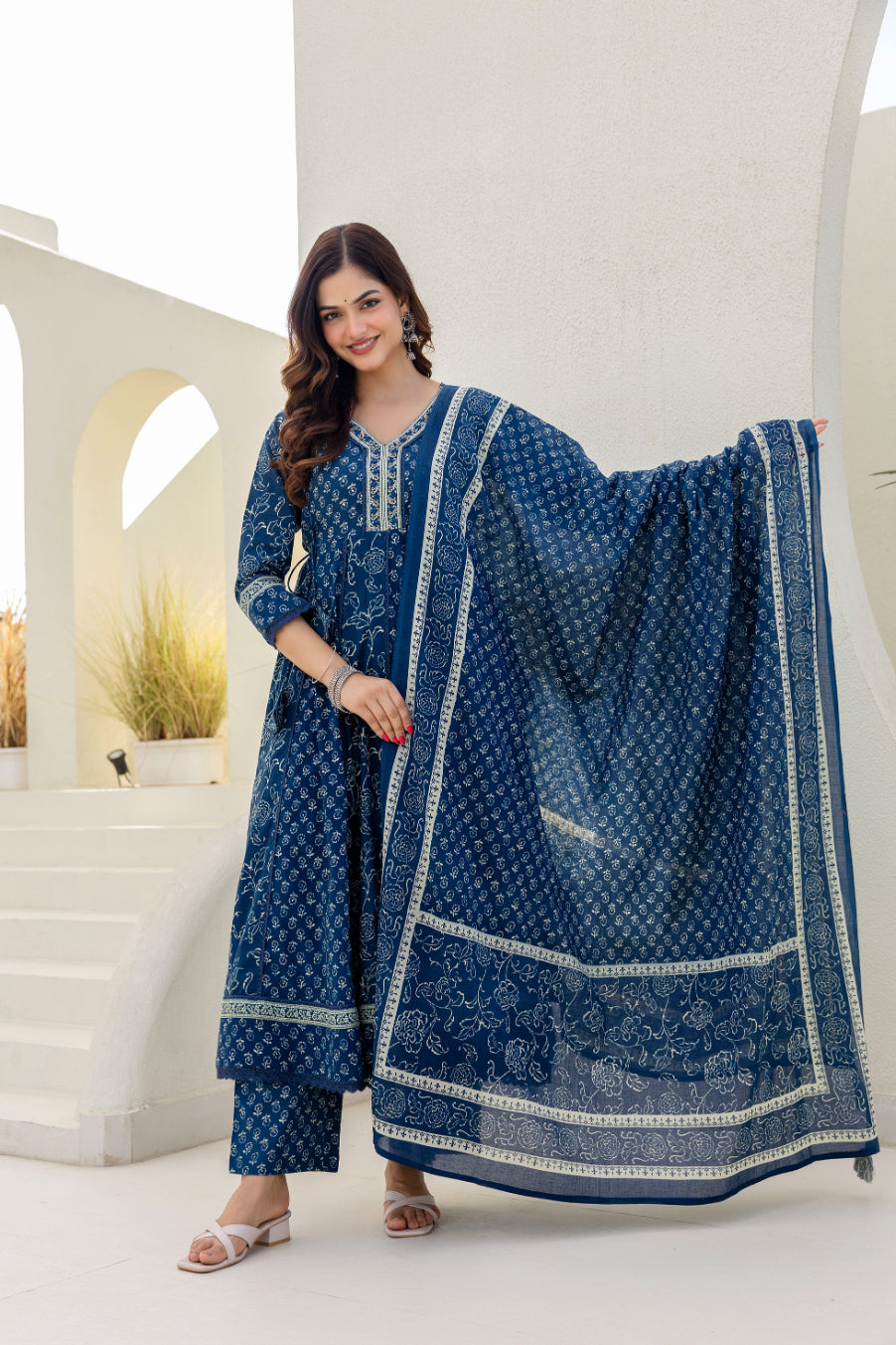 Refresh your ethnic wardrobe with the EthniFlair Women Floral Printed Panelled Sequinned Pure Cotton Kurta with Trousers & With Dupatta, thoughtfully designed to blend comfort with timeless elegance. Crafted from 100% pure cotton fabric, this kurta set offers a soft, breathable feel that keeps you comfortable throughout the day.