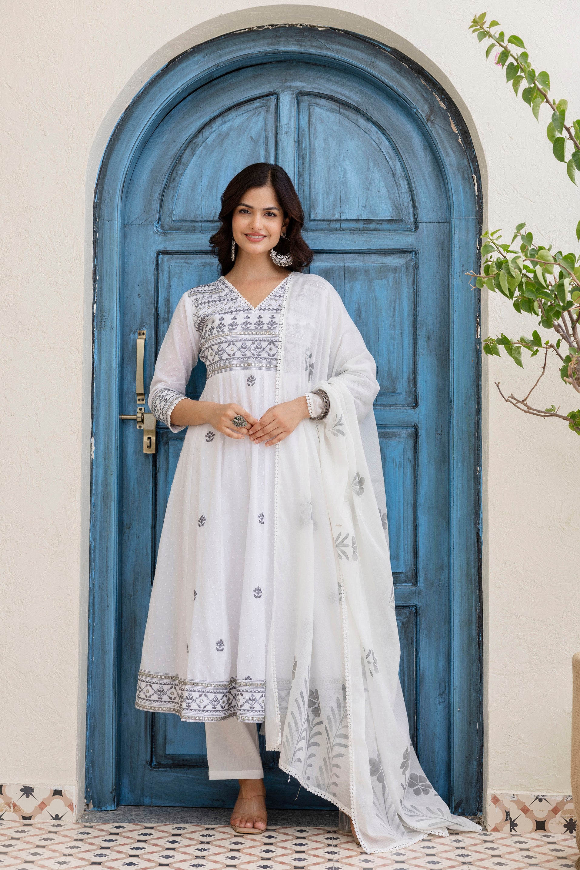 EthniFlair Floral Embroidered Kurta with Trousers & Dupatta