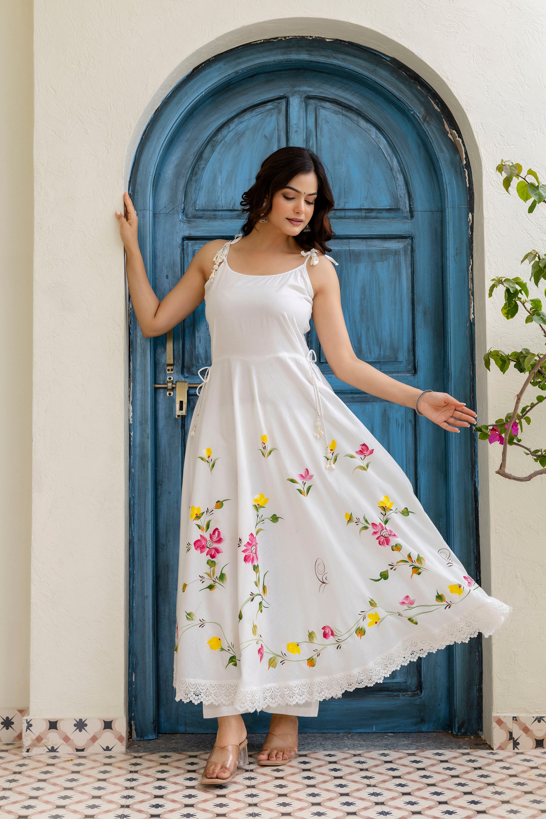 Add charm and elegance to your ethnic wardrobe with this EthniFlair Floral Empire Phulkari Kurta Set. Crafted from soft Cotton Slub, the kurta features a flattering empire silhouette with brush-paint detailing on the front panel. Comfortable palazzos complete the look, while the Nazneen dupatta with brush-paint design and lace detailing adds a delicate finishing touch. Perfect for festive occasions, family gatherings, or casual celebrations.