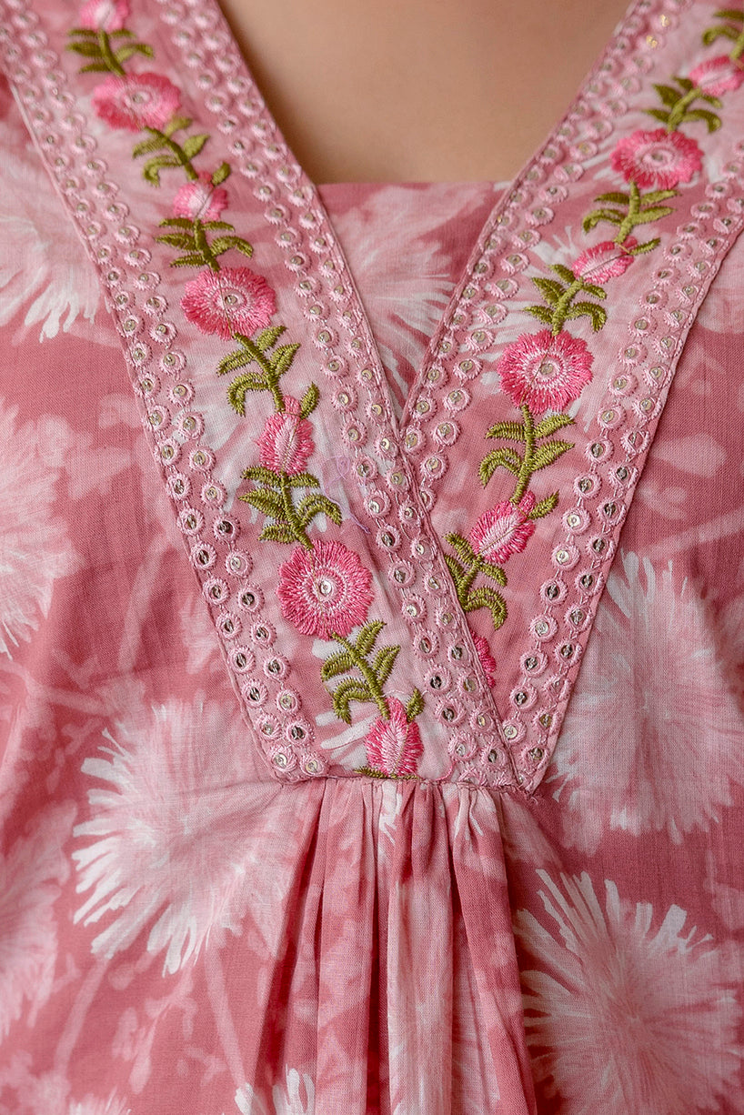 Experience refined elegance with the EthniFlair Floral Printed Aari Work Kurta with Trousers & Dupatta. Crafted from soft and breathable cotton, this beautifully printed kurta set blends comfort with traditional artistry. The yoke features intricate embroidery and Aari hand work, adding a rich handcrafted touch to the outfit. Paired with comfortable cotton trousers and a lightweight mulmul dupatta, this ensemble is perfect for festive events, family gatherings, and elegant daytime outings.