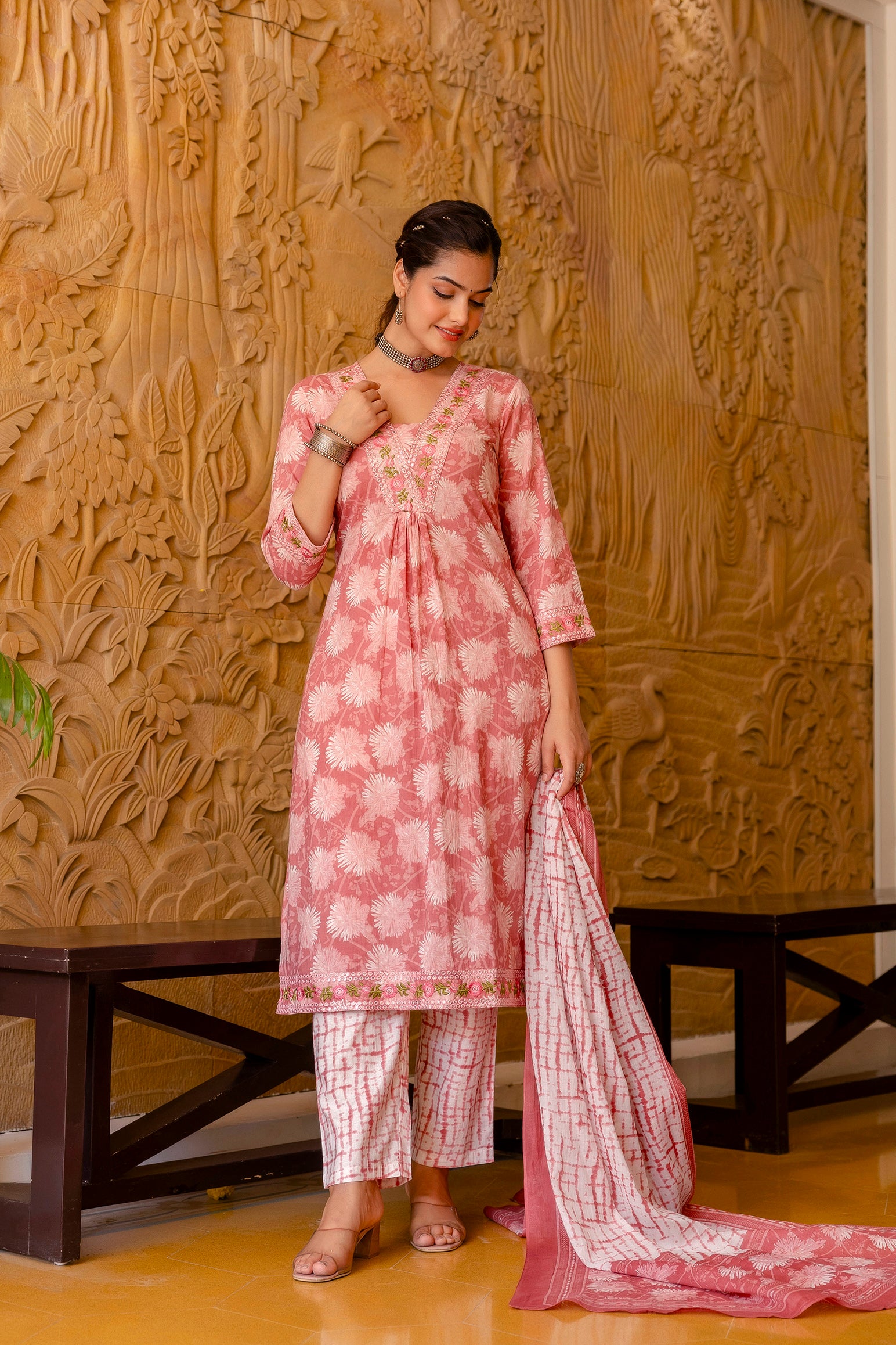 • Lightweight mulmul dupatta provides a soft and elegant drape