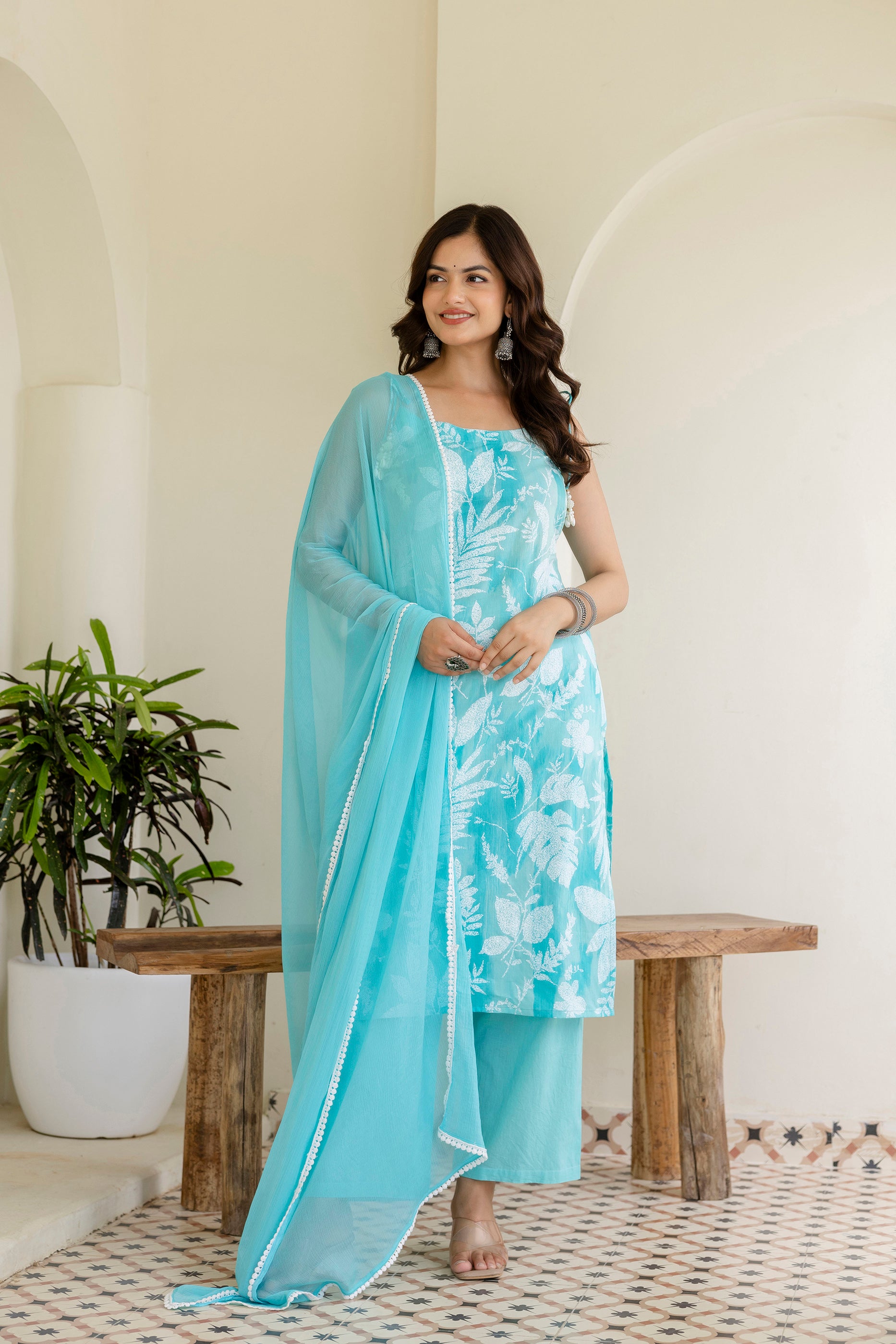 • Style: Floral printed kurta with trousers and dupatta