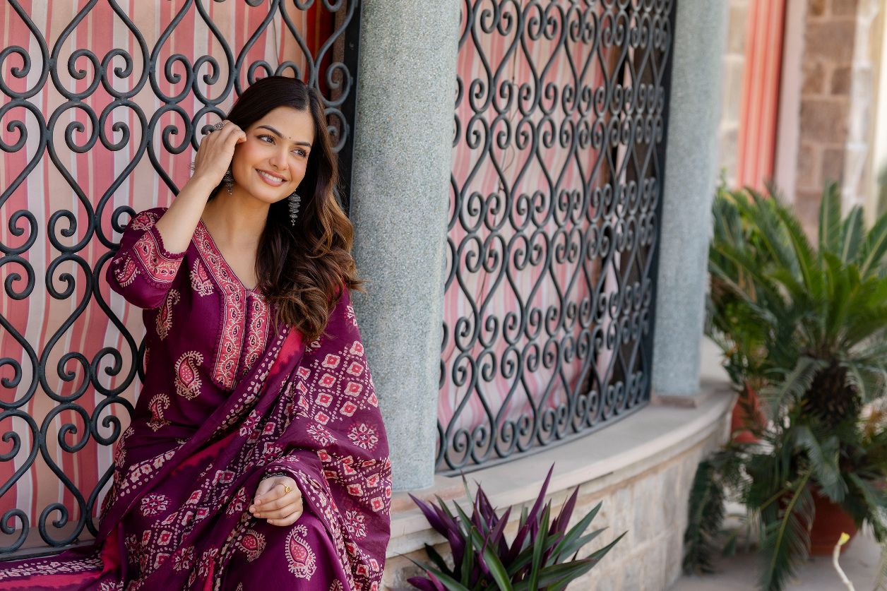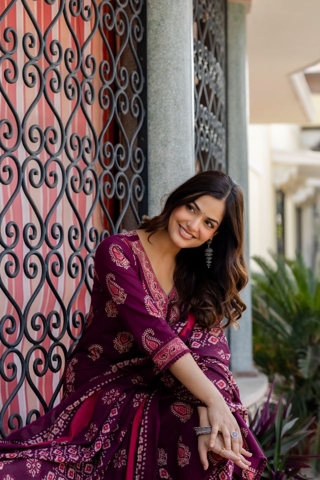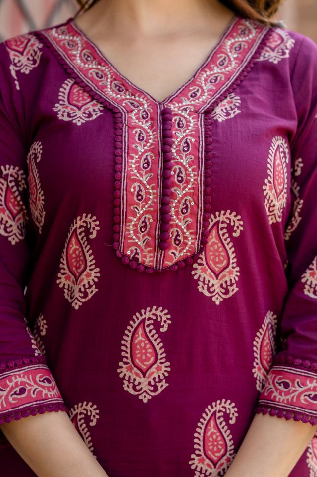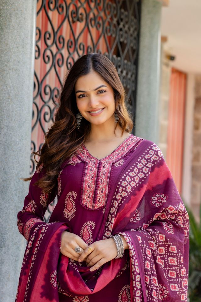 EthniFlair Women Cotton Yoke detail Straight Kurta Pant Dupatta Set