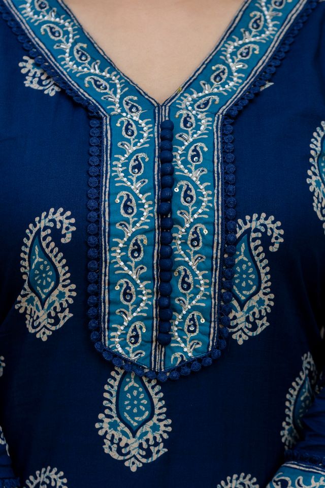 Elegant embroidered yoke that adds a refined, traditional touch right at the neckline, elevating the overall ethnic look.
