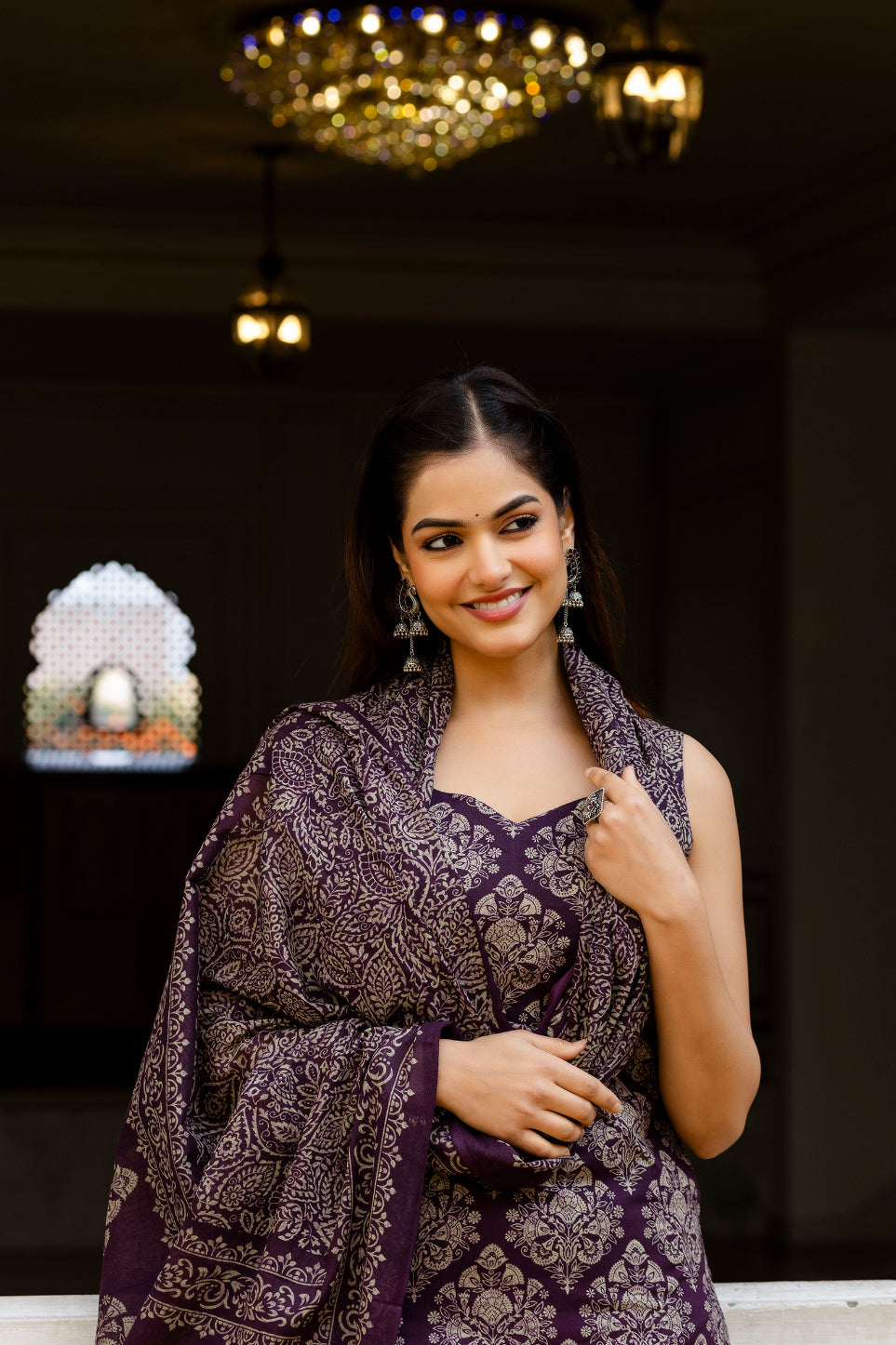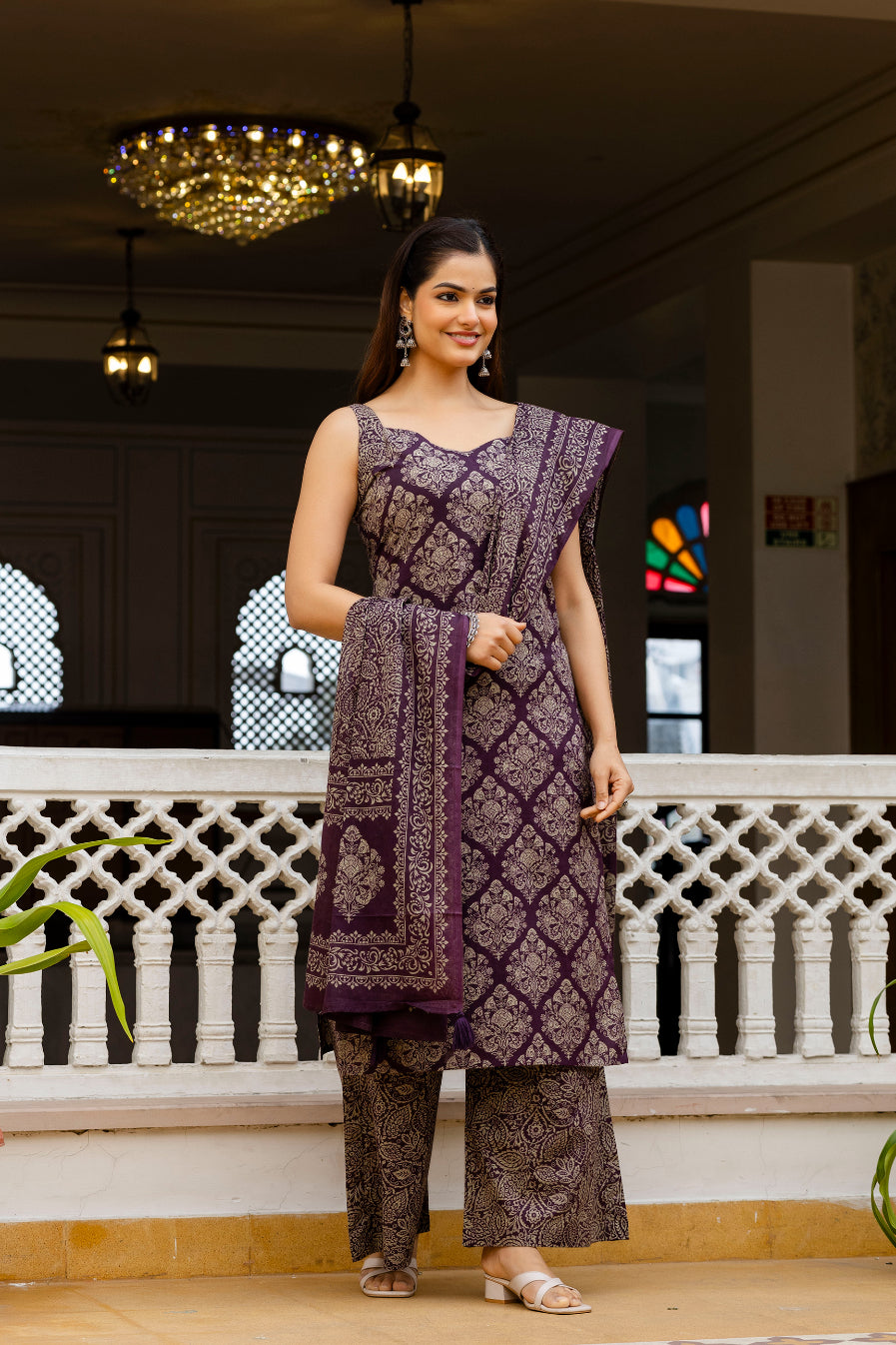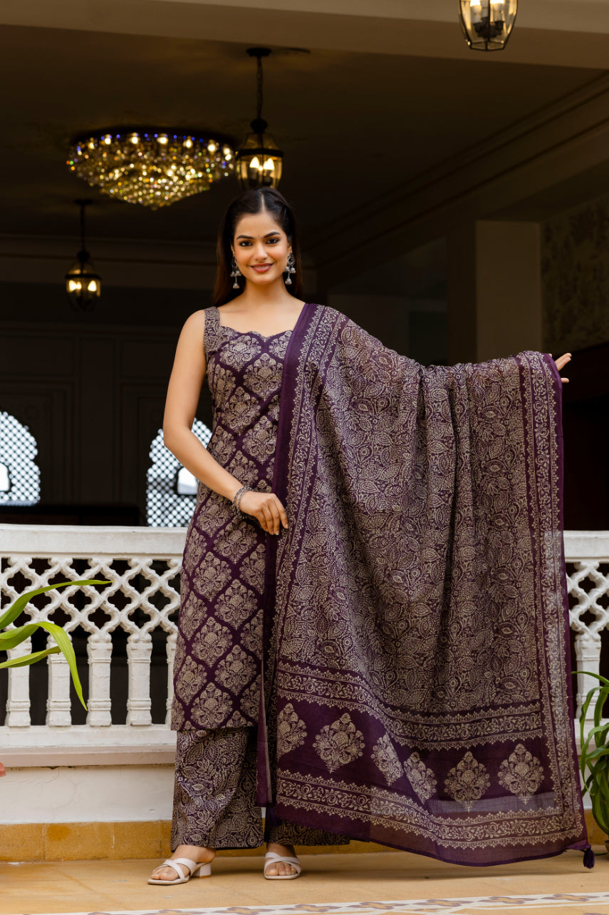EthniFlair Women Ethnic Motifs Printed Regular Pure Cotton Kurta with Palazzos & Dupatta is a perfect blend of comfort, elegance, and everyday ethnic style. Crafted from soft and breathable pure cotton fabric, this kurta set ensures all-day comfort, making it ideal for both festive and daily wear.